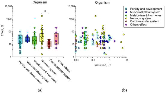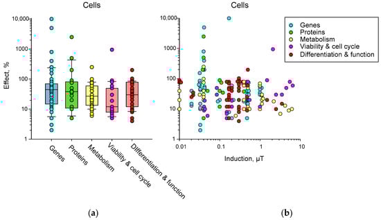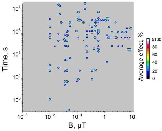 In the present review, we attempted to search for relationships between the quantitative characteristics of HMC and the magnitude of the effects described in the literature. We understand that the quality of publications varies considerably in this field of science. Therefore, we selected the following as inclusion criteria: the presence of adequate Sham control and the presence of a description of the type of installation, a description capable of validating the magnetic field induction values during the experiment, and statistical processing of the results. If a paper failed to meet any of these criteria, it was excluded from the analysis.
