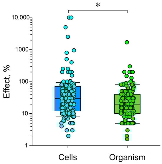 A recent review aimed to establish correlations between HMC parameters (induction and duration), the method of HMC generation [], and the magnitude of biological effects. Our analysis is expanded in this study through the examination of MHC effects at further cellular-level parameters. Additionally, we estimated the impact of both HMC validation features and statistical analysis methods.
