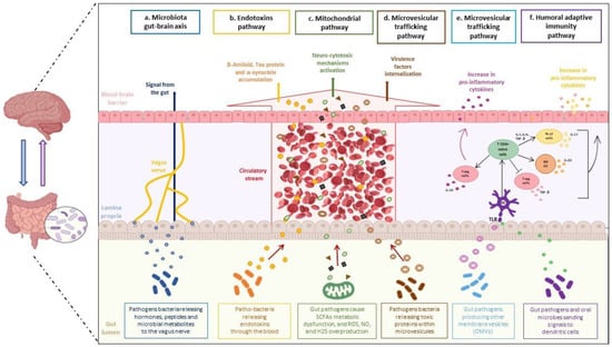Furthermore, the OMV production by the different bacterial subgroups was considered a possible immunological mediator. In conclusion, the endotoxins that drive the microglia and induce the neuronal damage using nitric oxide, oxidants, and cytokines, were discussed.