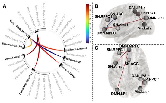 - Zalesky, A.; Fornito, A.; Bullmore, E.T. Network-based statistic: Identifying differences in brain networks. Neuroimage 2010, 53, 1197–1207. [Google Scholar] [CrossRef] [PubMed]