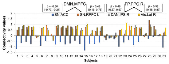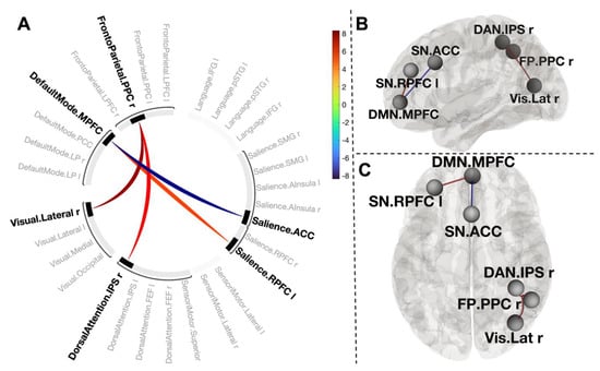 - Balaev, V.; Orlov, I.; Petrushevsky, A.; Martynova, O. Functional connectivity between salience, default mode and frontoparietal networks in post-stroke depression. J. Affect. Disord. 2018, 227, 554–562. [Google Scholar] [CrossRef]