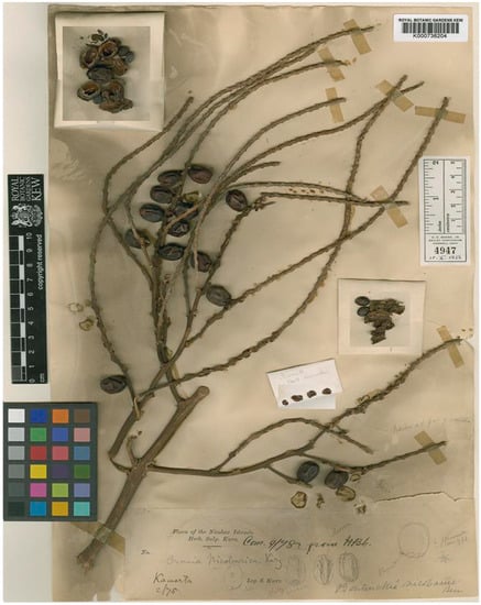 - Roxburgh, W. Flora Indica; Carey, W., Ed.; Cambridge University Press: Calcutta, India, 1832; Volumes 1–3. [Google Scholar]