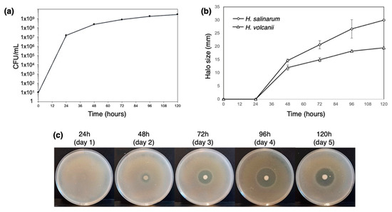 3.1. Characterization of H. Mediterranei Growth and Antihaloarchaeal Activity on YPC Agar