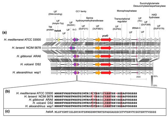 3.4. In Silico Analysis of H. Mediterranei Haloazolisin Genetic Environment