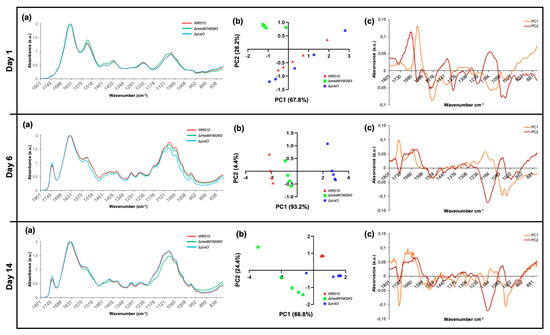 | Time | Strain | Wavenumber (cm−1) | Functional Group Assignments |