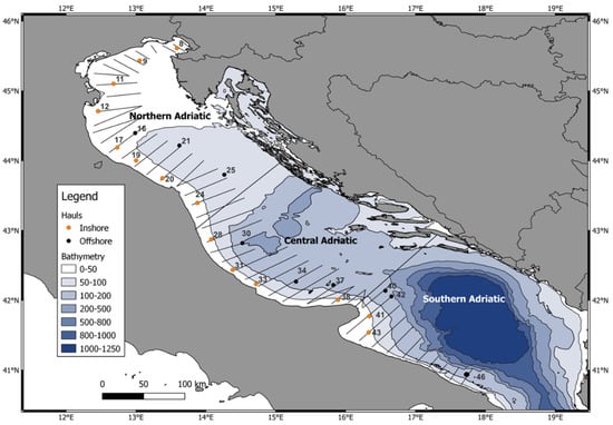 The Adriatic Sea is conventionally divided into three sub-basins: the North Adriatic, Central Adriatic and South Adriatic [].