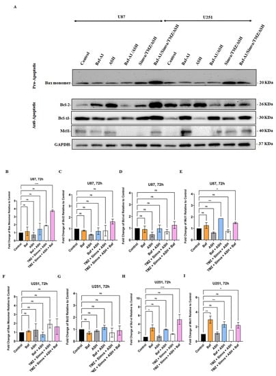 3.6. The Role of Bcl2 Pro- and Anti-Apoptotic Family Proteins in TMZ/Simva/ASH-Induced Cell Death in GBM Cells