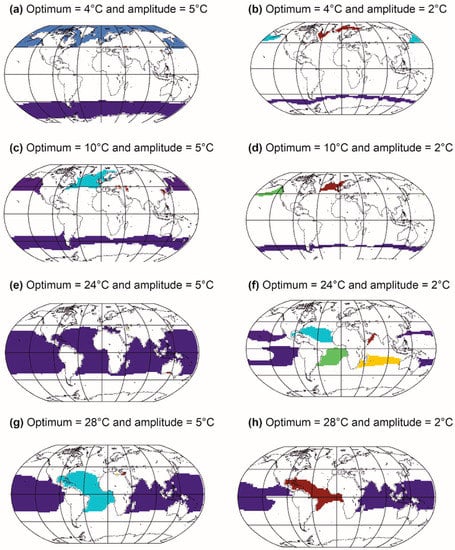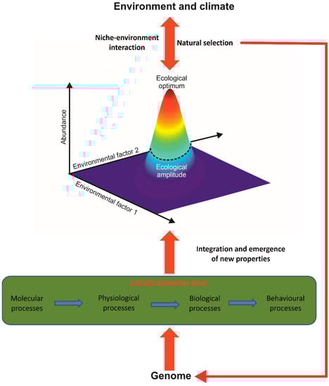 - Helaouët, P.; Beaugrand, G. Physiology, ecological niches and species distribution. Ecosystems 2009, 12, 1235–1245. [Google Scholar] [CrossRef]