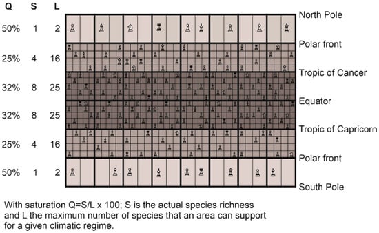 - Turner, J.R.G.; Hawkins, B.A. The global biodiversity gradient. In Frontiers of Biogeography: New Directions in the Geography of Nature; Lomolino, M.V., Heaney, L.R., Eds.; Sinauer Associates, Inc.: Sunderland, MA, USA, 2004; pp. 171–190. [Google Scholar]
