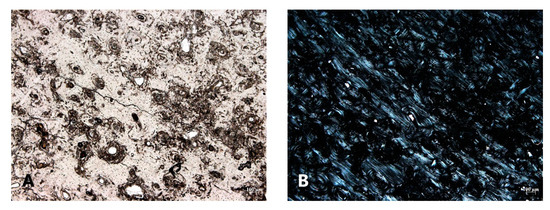 Garland [27] defines inclusions as “the presence of externally derived material lying within the available bone spaces; namely Haversian canals, osteocyte lacunae and canaliculi” [27] (p. 226). Examples of such material include sand, fungal cells, hyphae, rhizomorphs, bacteria, insect parts, and framboidal pyrite [13,27]. In contrast, infiltrations are defined as “the presence of unrelated material within the bone substance itself” [27] (pp. 226). When observed under low magnification, infiltrations have a granular appearance; while it looks like the bone matrix has been replaced by non-osseous derived material, when observed under high magnification [27]. Stained archaeological bone is also considered a form of infiltration [13,14], but to prevent confusion it is referred to as “staining” hence forth.