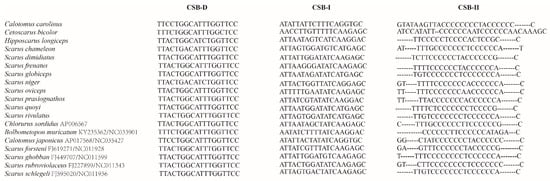 Conserved sequence blocks (CSBs) of the control region in the parrotfish mitogenomes.