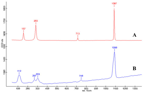 Raman spectrum of the formed crystal. Note—A: crystals in the control group; B: Crystals in the experimental group.