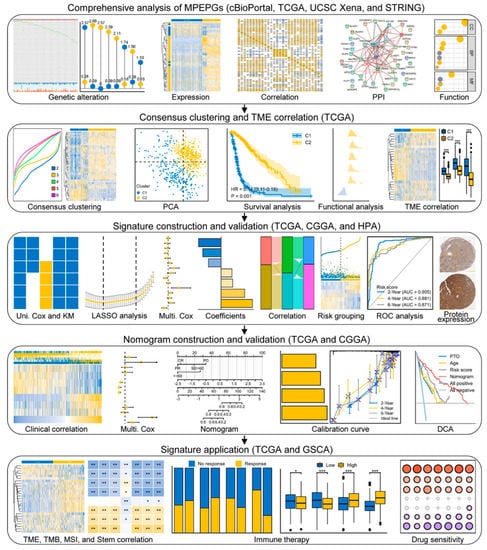 In this study, we used public datasets to systematically analyze MPERG expression, focusing on their clinical significance in glioma. We aimed to develop a novel MPERG-based prognostic signature and evaluate its potential to anticipate the clinical outcome and therapeutic effect in glioma patients. Figure 1 presents a flowchart of the research.