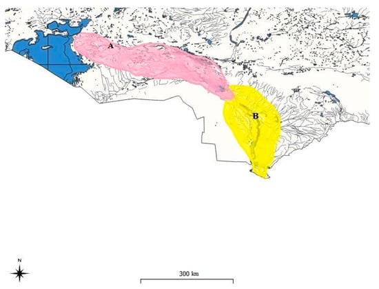 The Bulatmai barbel inhabits the waters of the Aral basin, but unlike the Aral barbel, it is a typically freshwater, residential form that does not make distant migrations. It was rare in the Aral Sea, occurring mainly in coastal desalinated areas []. The Bulatmai barbel forms groups only during the spawning period, the rest of the time it lives alone or in small groups. It was noted in the flatland of the Syrdarya and Chu rivers, as well as in floodplain lakes, main lakes and in effluent channels of irrigation systems [,]. The Kazakh part of the range includes the Syrdarya basin from the Shardara reservoir to the lower reaches, including the basins of rivers flowing from the southwestern slopes of the Karatau ridge (Arys, Bogen) []. In the Arys River, expedition reports also noted the presence of these two species.