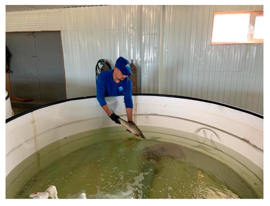Therefore, at the first stage of the formation of a replacement broodstock, we can use only the second method, which involves the domestication of wild producers with subsequent maintenance in artificial conditions for the purpose of multiple intravital generations of offspring. The domestication of wild producers consists of obtaining reproductive products from them with further adaptation of fish to artificial conditions of detention and subsequent maturation. In domestication, mature producers are used. This method makes it possible to reduce the time of formation of the replacement broodstock by two to three times and to ensure sufficient heterogeneity of the formed school. The period of formation of the broodstock is reduced to a minimum—5–7 years. When forming the broodstock according to this principle, a selection method is used, which means assessing the physiological state of breeders and assessing their genetic characteristics to make it possible to select pairs of breeders more accurately and purposefully in order to obtain more viable offspring.