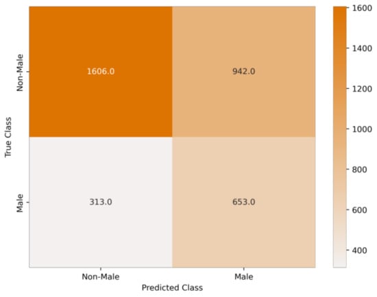 From Table 3 and Figure 3, it can be seen that the balanced accuracy and ROC AUC scores are fairly strong where the SVM model is able to distinguish between male and non-male classes. Through the confusion matrix, Figure 3, it is shown that the model can identify true males and true non-males.