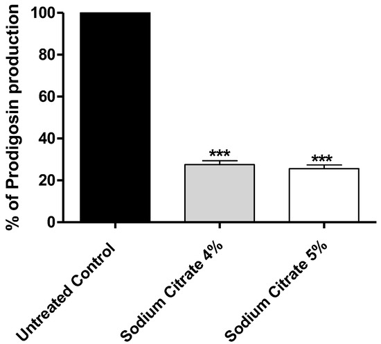 3.5. Sodium Citrate Decreases the Production of Prodigiosin