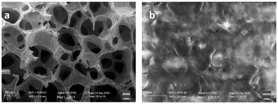 To observe the inner surface, the scaffold was cut as described in [2]. The samples were observed at 5000× magnification.