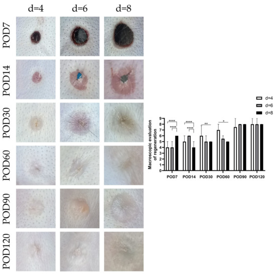- Rajnoch, C.; Ferguson, S.; Metcalfe, A.D.; Herrick, S.E.; Willis, H.S.; Ferguson, M.W. Regeneration of the ear after wounding in different mouse strains is dependent on the severity of wound trauma. Dev. Dyn. 2003, 226, 388–397. [Google Scholar] [CrossRef] [PubMed]