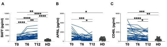 3.2. Evaluation of Plasma BAFF, APRIL and CD40L Levels