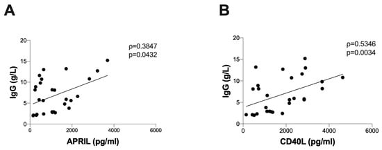 3.3. Correlation between B Lymphocyte Activation Markers and Immunoglobulin Levels