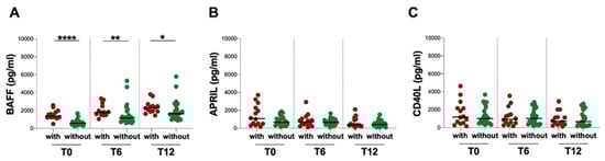 3.4. Infectious Events and Plasma BAFF, APRIL and CD40L Levels
