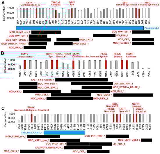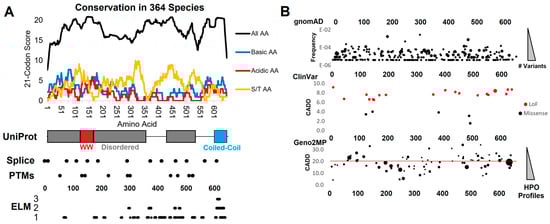 3.2. Human Clinical Variants Annotated to Functional Motifs of WAC