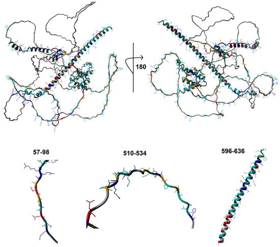 - Jumper, J.; Evans, R.; Pritzel, A.; Green, T.; Figurnov, M.; Ronneberger, O.; Tunyasuvunakool, K.; Bates, R.; Žídek, A.; Potapenko, A.; et al. Highly Accurate Protein Structure Prediction with AlphaFold. Nature 2021, 596, 583–589. [Google Scholar] [CrossRef]