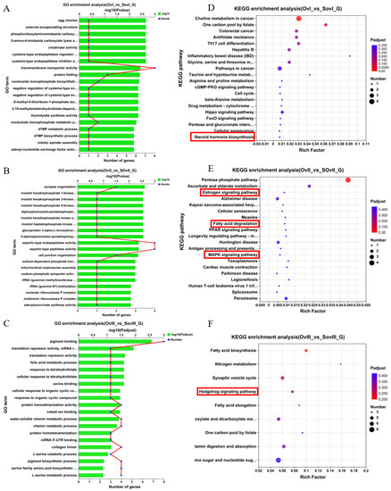 3.3. GO Terms and KEGG Pathway Analysis of Ovary Samples