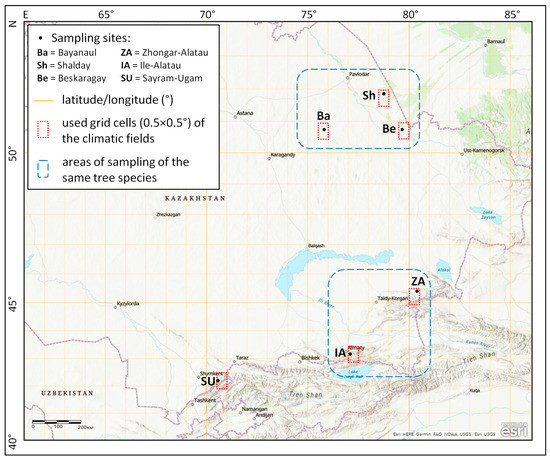 - Sehring, J. Forests in the Context of Climate Change in Kazakhstan; Justus Liebig University Giessen, Center for international Development and Environmental Research (ZEU): Giessen, Germany, 2012. [Google Scholar] [CrossRef]