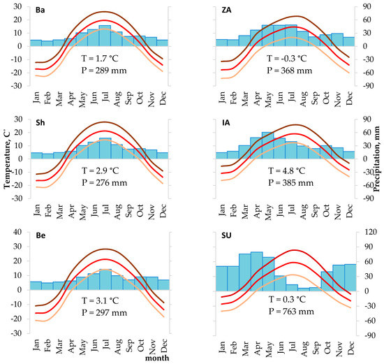 - Belokopytova, L.V.; Zhirnova, D.F.; Meko, D.M.; Babushkina, E.A.; Vaganov, E.A.; Krutovsky, K.V. Tree rings reveal the impact of soil temperature on larch growth in the forest-steppe of Siberia. Forests 2021, 12, 1765. [Google Scholar] [CrossRef]