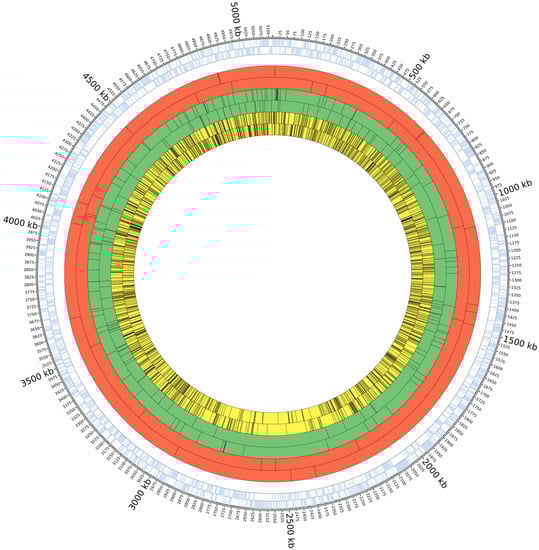 - Krzywinski, M.; Schein, J.; Birol, I.; Connors, J.; Gascoyne, R.; Horsman, D.; Jones, S.J.; Marra, M.A. Circos: An information aesthetic for comparative genomics. Genome Res. 2009, 19, 1639–1645. [Google Scholar] [CrossRef] [PubMed]