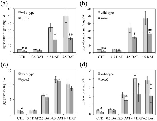 - Solís-Guzmán, M.G.; Argüello-Astorga, G.; López-Bucio, J.; Ruiz-Herrera, L.F.; López-Meza, J.E.; Sánchez-Calderón, L.; Carreón-Abud, Y.; Martínez-Trujillo, M. Arabidopsis thaliana sucrose phosphate synthase (sps) genes are expressed differentially in organs and tissues, and their transcription is regulated by osmotic stress. Gene Expr. Patterns 2017, 25–26, 92–101. [Google Scholar] [CrossRef]