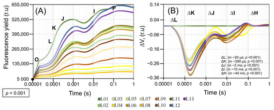 3.6. OJIP Chlorophyll a Fluorescence Kinetics
