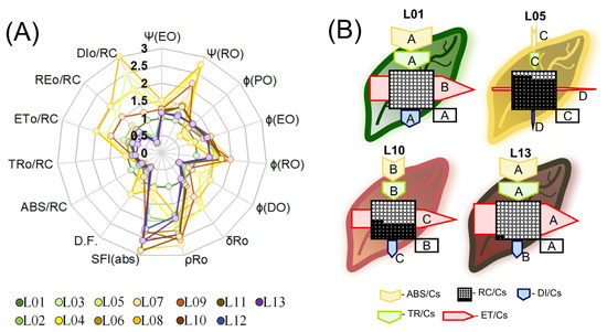 - Strasser, R.J.; Srivastava, A.; Tsimilli-Michael, M. The Fluorescence Transient as a Tool to Characterize and Screen Photosynthetic Samples. In Probing Photosynthesis: Mechanisms, Regulation and Adaptation, 1st ed.; CRC Press: London, UK, 2000; pp. 443–480. [Google Scholar]