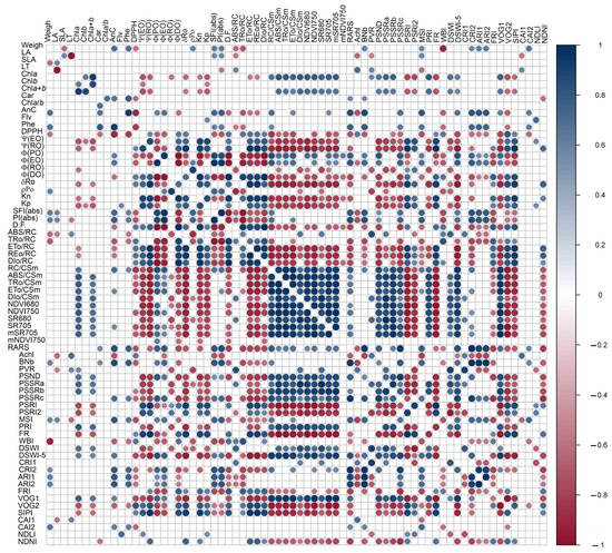 4.3. PRI and PSSRc Indexes Are Strongly Associated with VIS–NIR–SWIR Bands