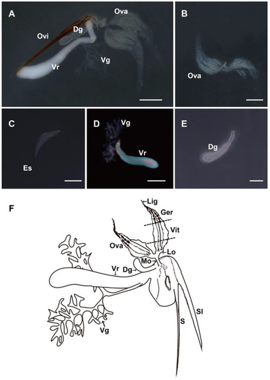 2.2. Dissection of Female Reproductive Apparatus and Its Light Microscopy