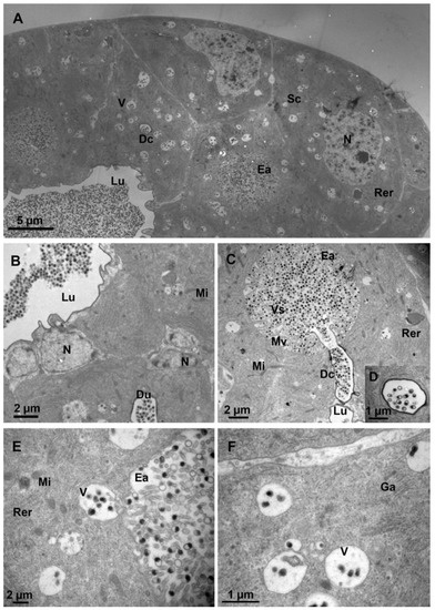 - Li, W.D.; Yu, R.X.; Chen, X.X.; He, J.H. Venom gland of the ichneumonid Diadromus collaris: Morphology, ultrastructure and age-related changes. Insect Sci. 2006, 13, 137–143. [Google Scholar] [CrossRef]