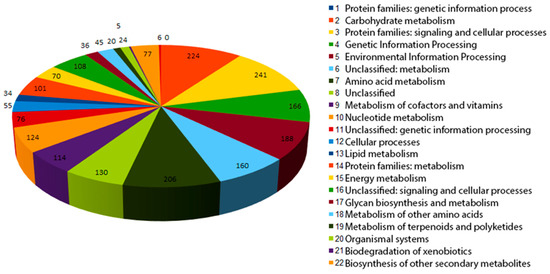 Number of genes associated with general functional categories in the genome of strain 112 based on KEGG classification.