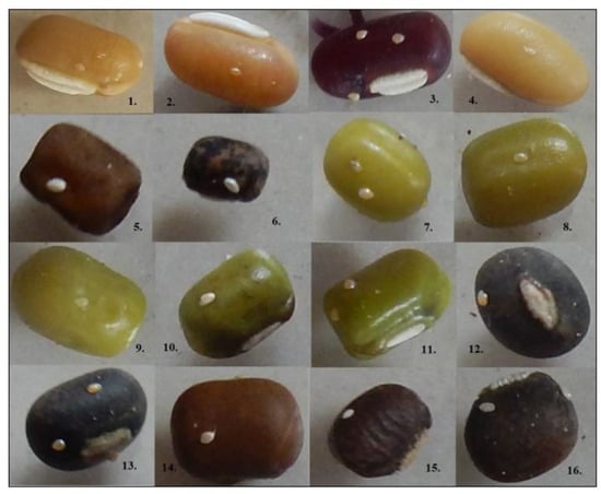 - Chakraborty, S.; Chaudhuri, N.; Senapati, S. Correlation Between Seed Parameters and Relative Susceptibility of Mung Bean Genotypes (Vigna radiata L.) to Callosobruchus chinensis L. During Storage. Ann. Plant Prot. Sci. 2004, 12, 48–50. [Google Scholar]