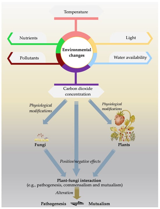 As a result of the changing environmental conditions, the physiology of plants and fungi can be affected, thereby altering the interaction between them.