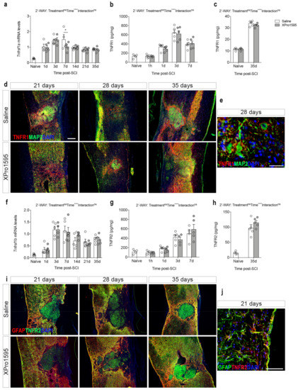 3.3. Inhibition of solTNF Does Not Affect the Spatio-Temporal Expression of TNF Receptors after SCI