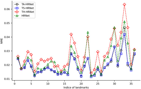 In classification, CNNs typically extract high-level features that capture the overall shape, texture, and color of objects or images, which are useful for discriminating between different image categories. Meanwhile, in landmark detection, low-level features that capture the edges, corners, and other location-sensitive features of images are extracted [55], which are meaningful for identifying specific landmarks in the image. Freezing all stages may limit the new-task learning ability of the HRNet model pre-trained on the ImageNet classification task [54], especially for landmark detection requiring significantly different features from the classification task. By fine-tuning some of the stages, the model has a greater capacity to learn new features relevant to the landmark detection task. Therefore, the performance of TH-HRNet was slightly worse than that of HRNet, as it is inconsistent with the classification results of cross-domain transfer learning [31], but TS-HRNet and TA-HRNet performed better than HRNet (Figure 3).