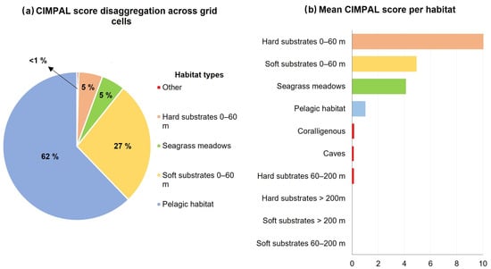 (a) Disaggregation of the total CIMPAL score per habitat type, (b) standardized mean CIMPAL scores per habitat type.