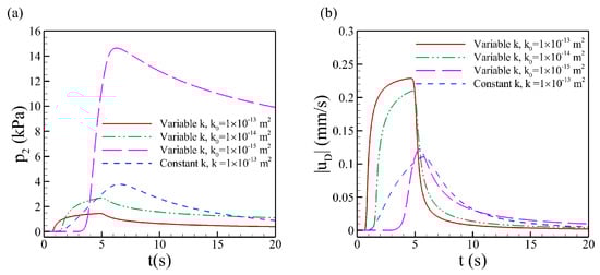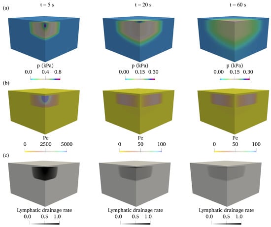 18] in horizontal and vertical directions for different injection speeds. Due to the lack of in situ quantitative experiments on IFP and lymphatic uptake at the injection site, numerical simulations are used to improve our understanding of the effects of the tissue mechanical properties on drug delivery. The effect of the biomechanical responses of the soft tissue on the fluid flow is investigated by coupling Darcy’s law with stress–strain behaviors for the solid skeleton, i.e., the constitutive models. The poroelastic model is widely used to describe the deformation of biological tissues and hydrogels [