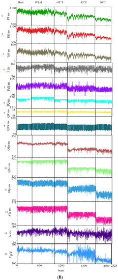 According to the present findings, both QR and QRS intervals, also called “R-peak time” or “intrinsicoid deflection” and “intraventricular conduction”, and their variability (in terms of standard deviation) seem not to be modulated by the ANS activity due to the fact that they remained almost unchanged during all the five study phases. Notwithstanding, the intrinsicoid deflection obtained by unipolar leads (V5–V6) has been suggested as a possible non-invasive electrical marker of sudden cardiac death [30,31]. In the actual study, we calculated the R-peak time just on the II lead and in a healthy setting and analyzed this variable only in terms of its possible oscillatory behavior within the P-QRS-T complex. Of note, the R-peak time was found to relate to the left ventricular end-systolic volume, suggesting that this parameter might be influenced by the myocardial structure rather than by the ANS itself [30].