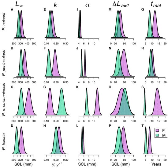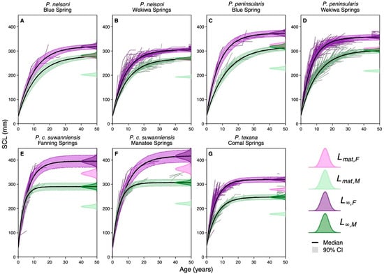 Siders, Z.A.; Stratmann, T.A.; Turner Tomaszewicz, C.N.; Walde, A.D.; Munscher, E.C. Somatic Growth and Maturity for Four Species of River Cooter Including Pseudemys concinna suwanniensis, P. nelsoni, P. peninsularis, and P. texana. Biology 2023, 12, 965. https://doi.org/10.3390/biology12070965