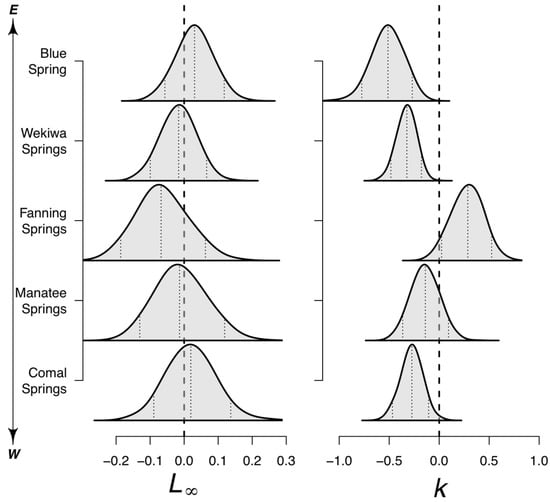 - Fabens, A.J. Properties and fitting of the von Bertalanffy growth curve. Growth 1965, 29, 265–289. [Google Scholar]