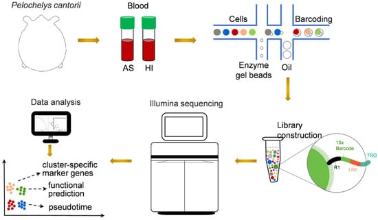 Schematic representation of scRNA-seq analysis of P. cantorii hemocytes. AS and HI represent hemocytes of active state and hibernation period, respectively.
