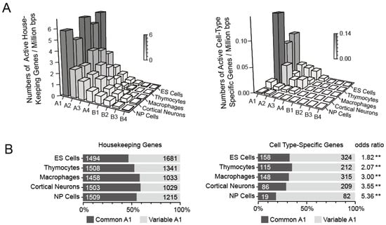 These analyses indicated that common A1 with high gene density is enriched with active, highly expressed, and housekeeping genes. Compared to common A1, variable A1 is significantly enriched in cell type-specific genes.